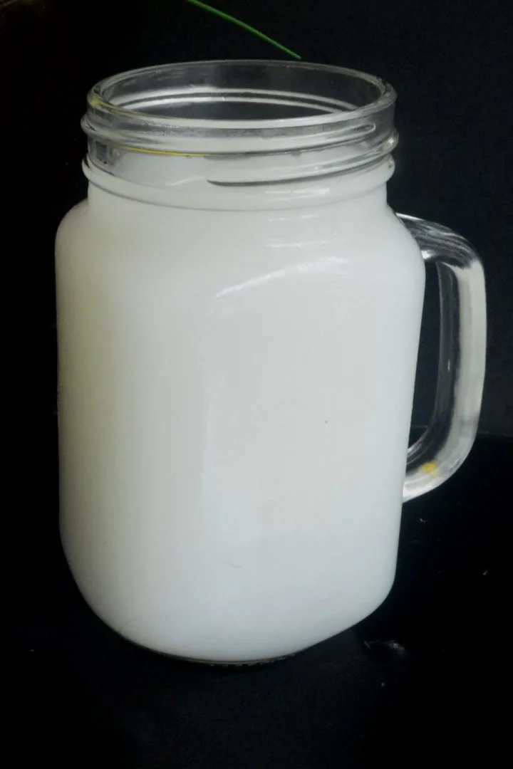 This white milky uncarbonated soft drink has a sweet but slightly acidic flavor and is a staple in all Japanese supermarkets. Its eye-catching packaging makes it hard to miss with its pattern of light and dark blue circles on a transparent plastic bottle.