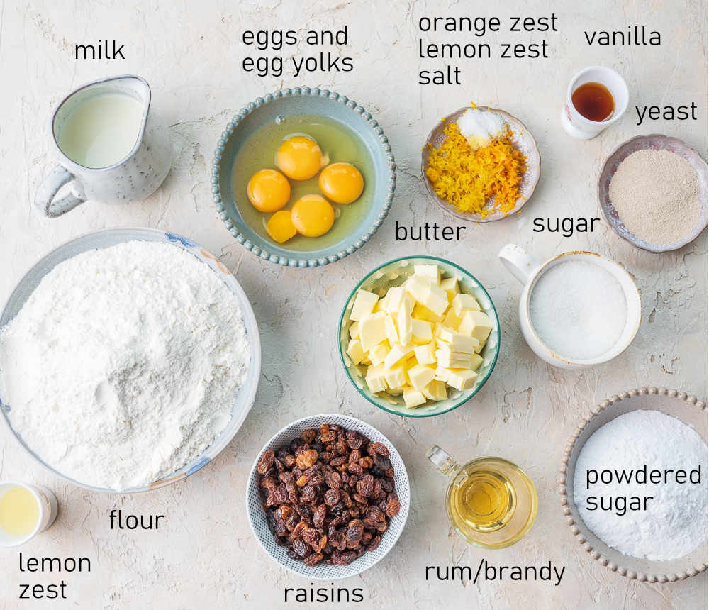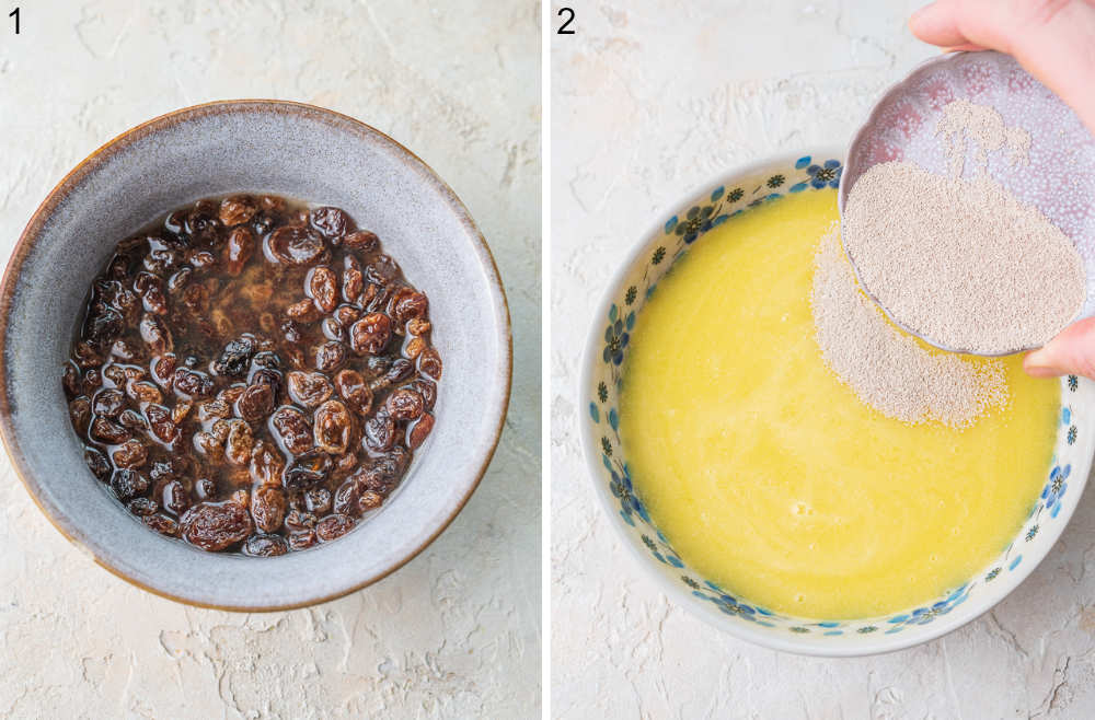 This is a basic yeast dough recipe. This particular recipe is really rich, almost as rich as brioche, I’ve added lots of butter and lots of raisins. If you don’t like raisins you could omit them but I think they add so much flavor and moisture to this dessert, it would really be a shame.