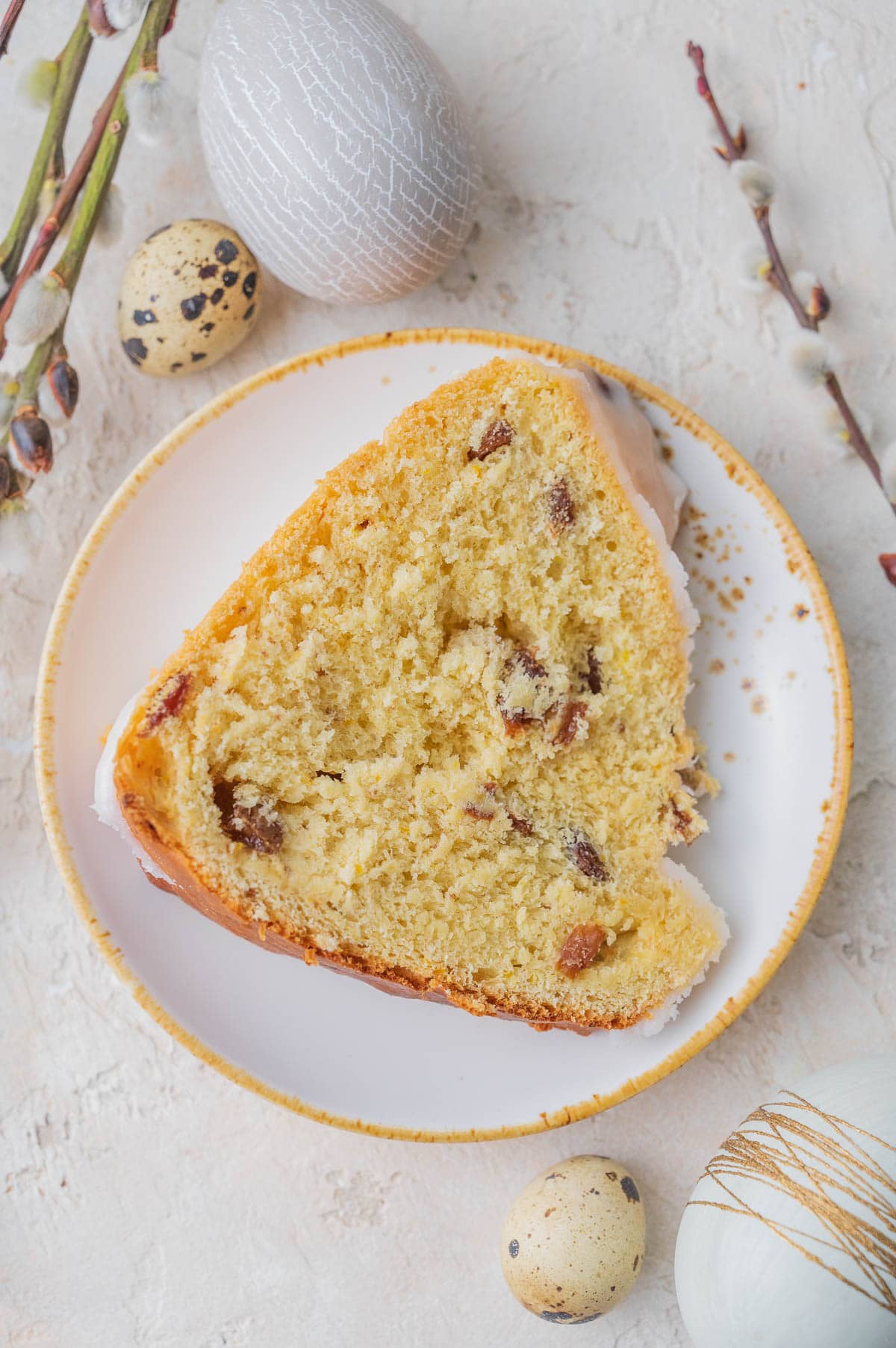 Polish Easter babka is a rich yeast-leaven bundt cake. The babka from my recipe comes out delicate, moist, and not dry, almost like a brioche – it’s great on its own and your first instinct will NOT be to slather it with butter, which often happens with yeast sweet bread recipes. It is similar to Italian panettone.