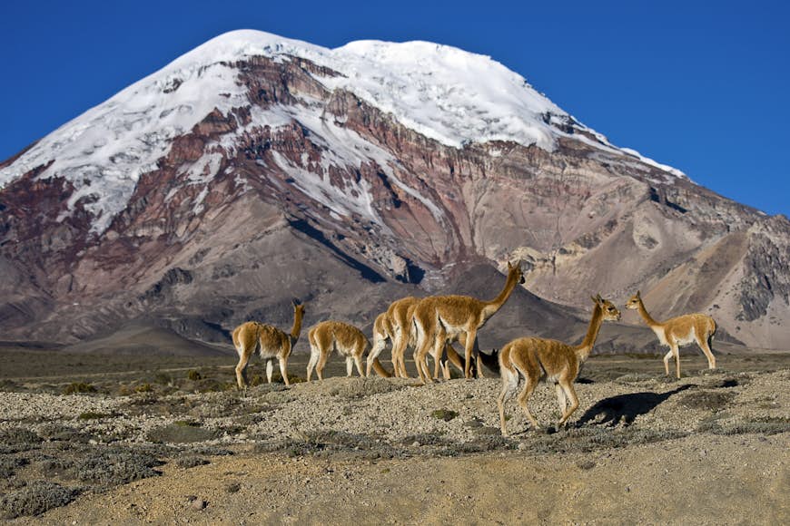 Chimborazo is one of eight snow-capped peaks that line the so-called Avenue of Volcanoes, which runs down Ecuador like a knobbly spine. All these peaks are incredible to hike up or around – if your body can handle the dizzying altitudes. Take it slowly to acclimatize; herds of vicuña, a wild relative of the domesticated llama, will keep you company on the way. Read More...