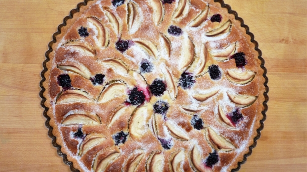 Autumn apple and blackberry frangipane tart