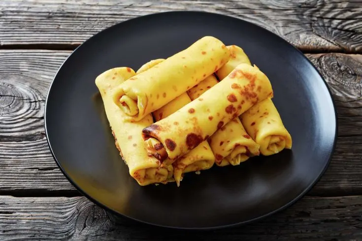 Most countries have their own variations of pancake or crepes, and Ukraine is no exception. Nalysnyky are crepes, made from a batter of eggs, sugar, milk, and flour.