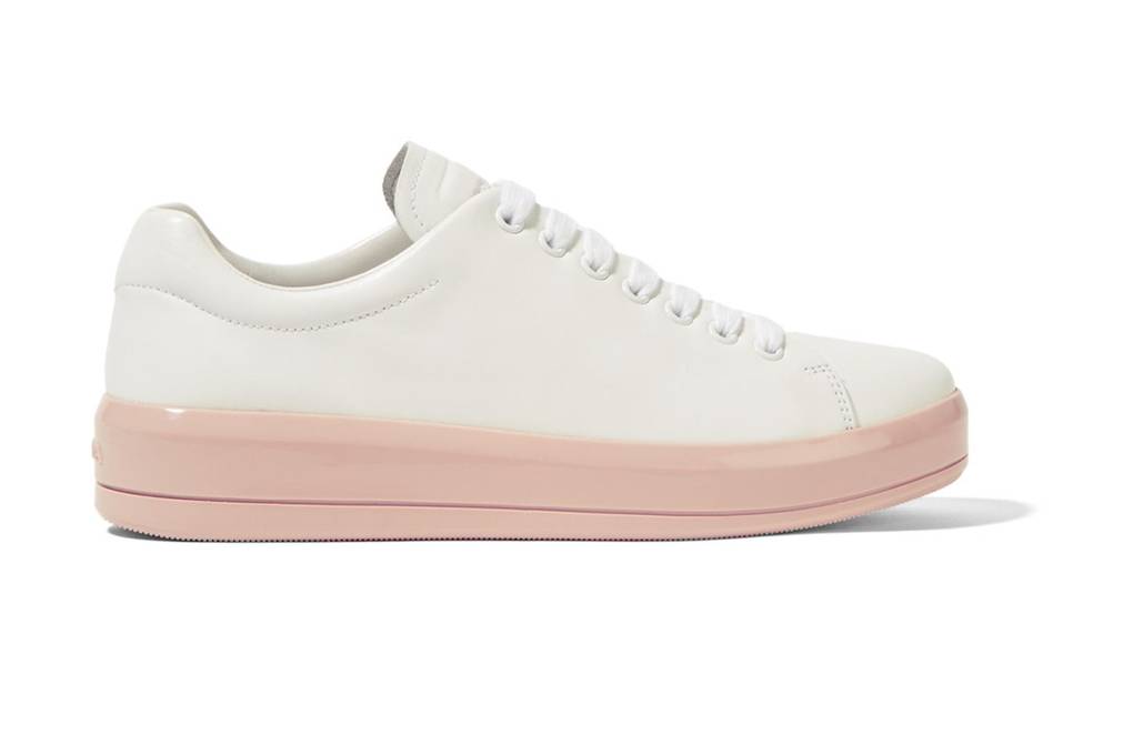 White leather trainers with blush sole, £440, Prada at Net-A-Porter