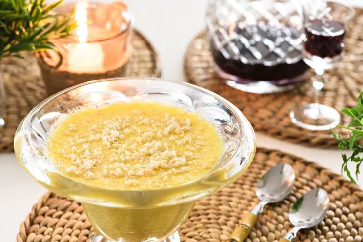 It is said that someone received a few unexpected guests for dinner, and not having a dessert prepared, she put together a dish from what she had in the cupboard, which was simply sugar, eggs, and condensed milk. The result was a silky-smooth gold-colored mousse.