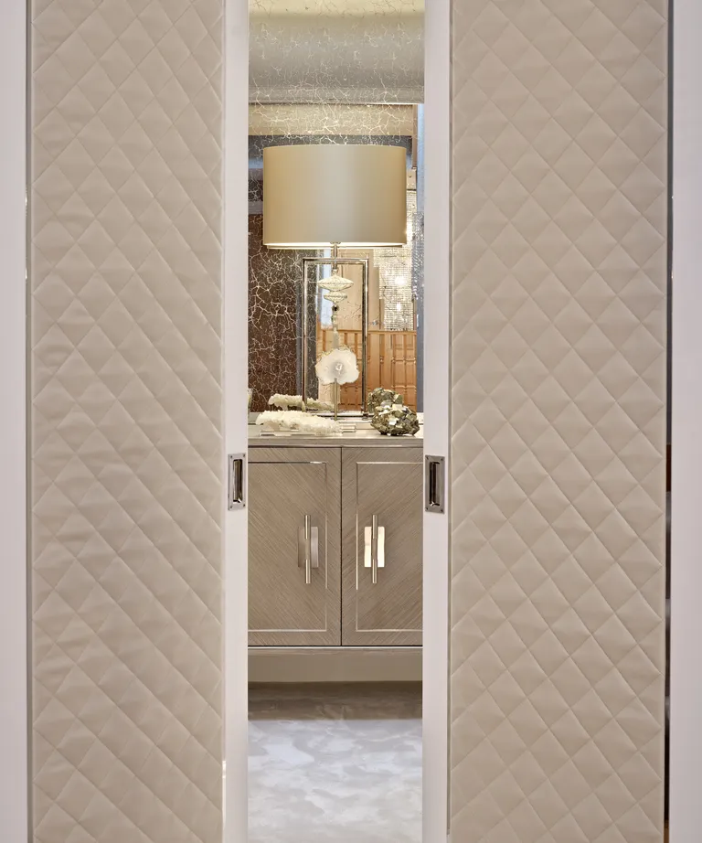 ‘By creating an impressive entrance, we can evoke the feeling of arriving in a luxury bathroom, closing the door on the noise of the world and enjoying a sense of calm and privacy,’ says Helen Bygraves of Hill House Interiors(opens in new tab), who has recently clad a set of double doors in luxurious diamond-stitched leather for this reason.