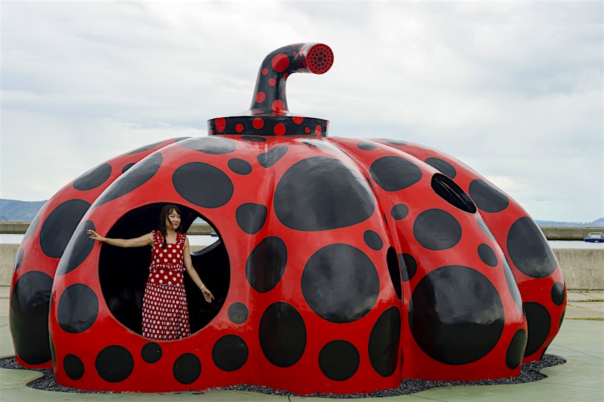 Fuelling interest in the creative movement is renowned “art island” in the Inland Sea, Naoshima. While Yayoi Kusama’s Yellow Pumpkin has become a symbol of Naoshima, her massive Red Pumpkin at the port invites exploration from the inside.