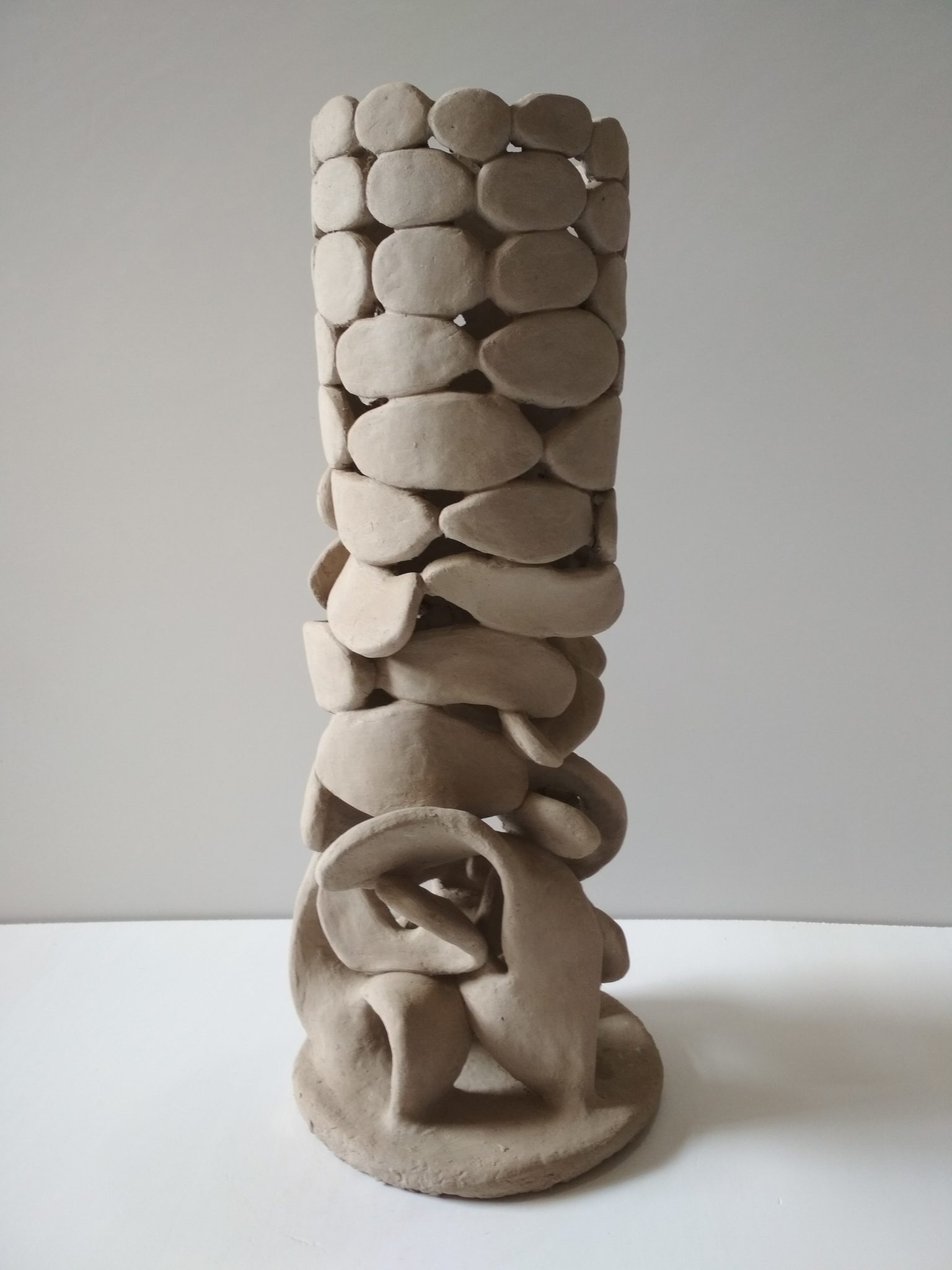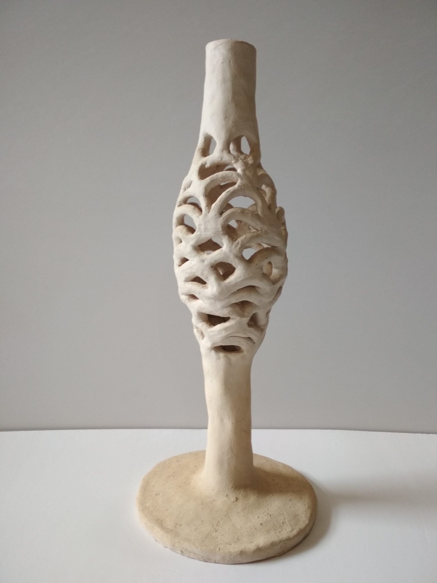 Around 2010, I started thinking about combining the two strands of my work, and, after some experimentation, I ended up making hand-built clay sculptures. The idea was to find a balance between the scientific and aesthetic contents.