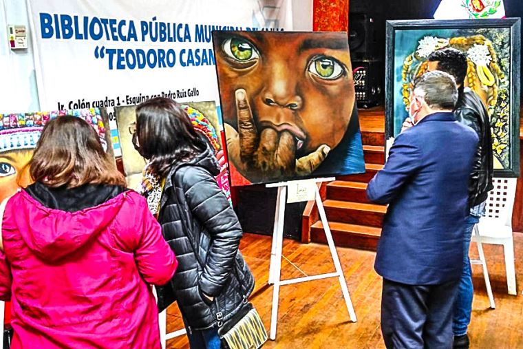 The exhibition Miradas en el puerto, by the plastic artist Susan Hurtado Muñoz, was inaugurated at the Teodoro Casana Robles Municipal Public Library, of the Provincial Municipality of Callao.