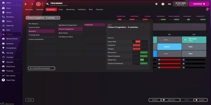 Although it may sound obvious, it's vitally important to manage each player's workload in Football Manager 22. This important part of management is often overlooked by new managers as they're either too focused on trying to win their early games and consequently overwork their key players, or they're underestimating how much individual attention each player needs in comparison to most other sports games.
