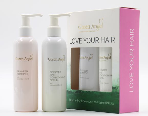 The Love Your Hair Set contains a full size 200ml Green Angel Shampoo and a 200ml Conditioning Serum, packed with natural seaweed nutrients for beautiful healthy hair.