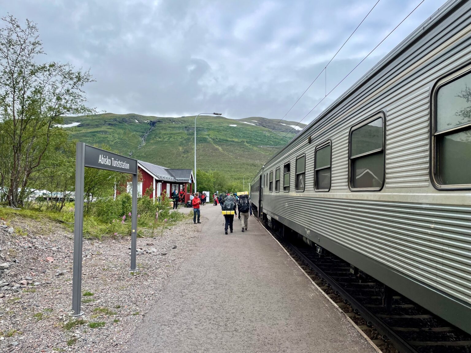 I straightened out my back after 17 hours on the night train from Stockholm to Abisko, did the ceremonial weighing of the backpack (13.4 kg