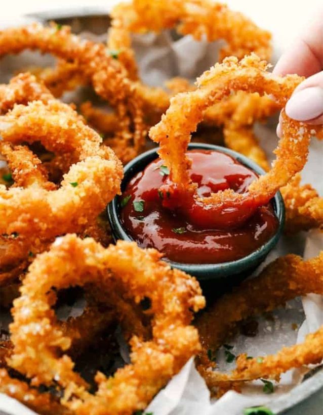 When it comes to dipping your onion rings in a nice creamy sauce, anything goes. Ketchup, homemade mayonnaise , honey-mustard sauce, curry sauce, cocktail sauce, tartar sauce, BBQ sauce… Let your imagination run wild and above all your desires!