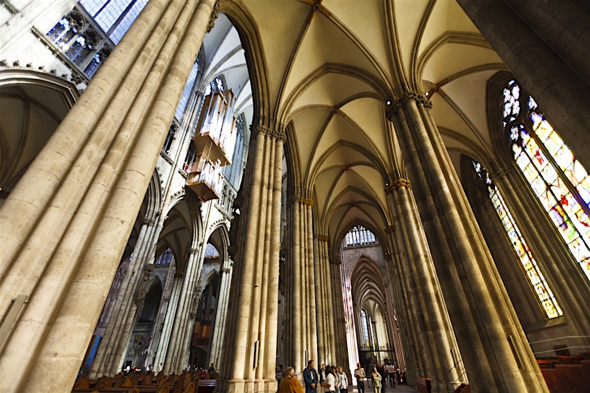 Access to the cathedral is free and, once inside, you’ll be rewarded with its glut of treasures, such as the Shrine of the Three Kings and its impressive range of medieval stained-glass windows, as well as one from modern times; a beautiful abstract design by contemporary artist Gerhard Richter. Those with a head for heights can climb the 533 steps up the Dom’s south spire for panoramic views over the city and the Rhine. It’s also worth seeking out Cologne’s 12 Romanesque churches, including the Church of St Ursula, Church of St Gereon and the Church of Gross St Martin.