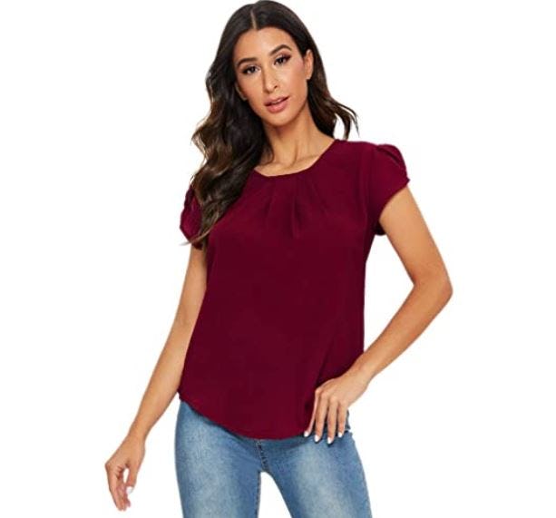 This Pleated Top With Cute Cap Sleeves