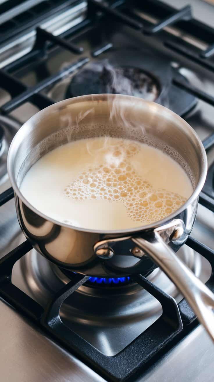 Combine the milk and heavy cream in a medium saucepan. Heat over medium-low heat until steaming but not boiling.
