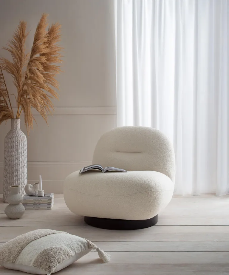 The trend for bouclé, a textured fabric characterized by looped yarn, gained significant momentum in 2020 and shows no signs of waning in 2023. Embrace this fabric by opting for a statement piece such as a bouclé sofa or an eye-catching swivel accent chair. Alternatively, you can dip your toe into the trend by incorporating textured cushions into your living room decor.