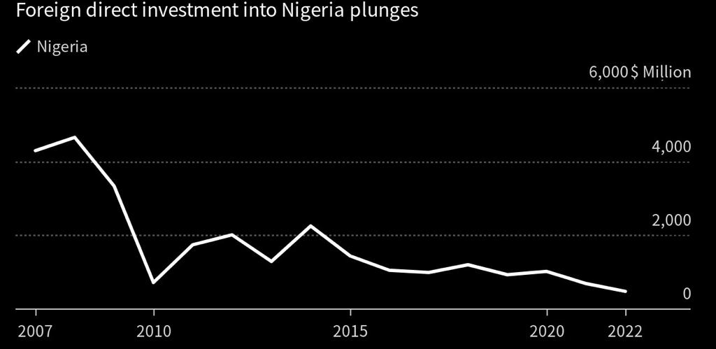 Foreign direct investment in Nigeria fell by 33% last year due to a severe shortage of dollars, which discouraged crypto companies from expanding into the country.