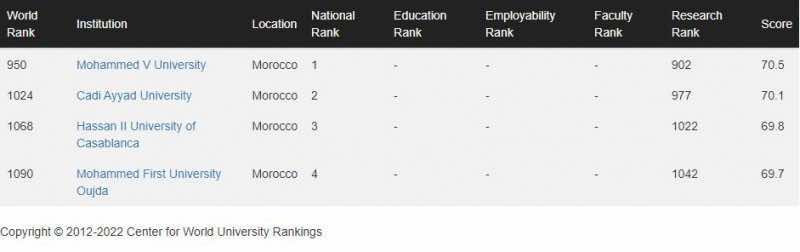 In CWUR’s ranking, Cadi Ayyad University in Marrakech comes in 1024th position worldwide, and second nationally, followed by Hassan II University of Casablanca (1068th), and Mohammed I University in Oujda (1090th).