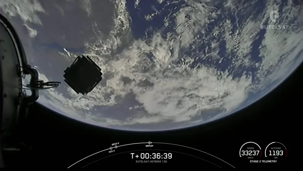 A Falcon 9 rocket carrying Eutelsat's Hotbird 13G satellite lifted off from Florida's Cape Canaveral Space Force Station Thursday at 1:22 a.m. EDT (0522 GMT).