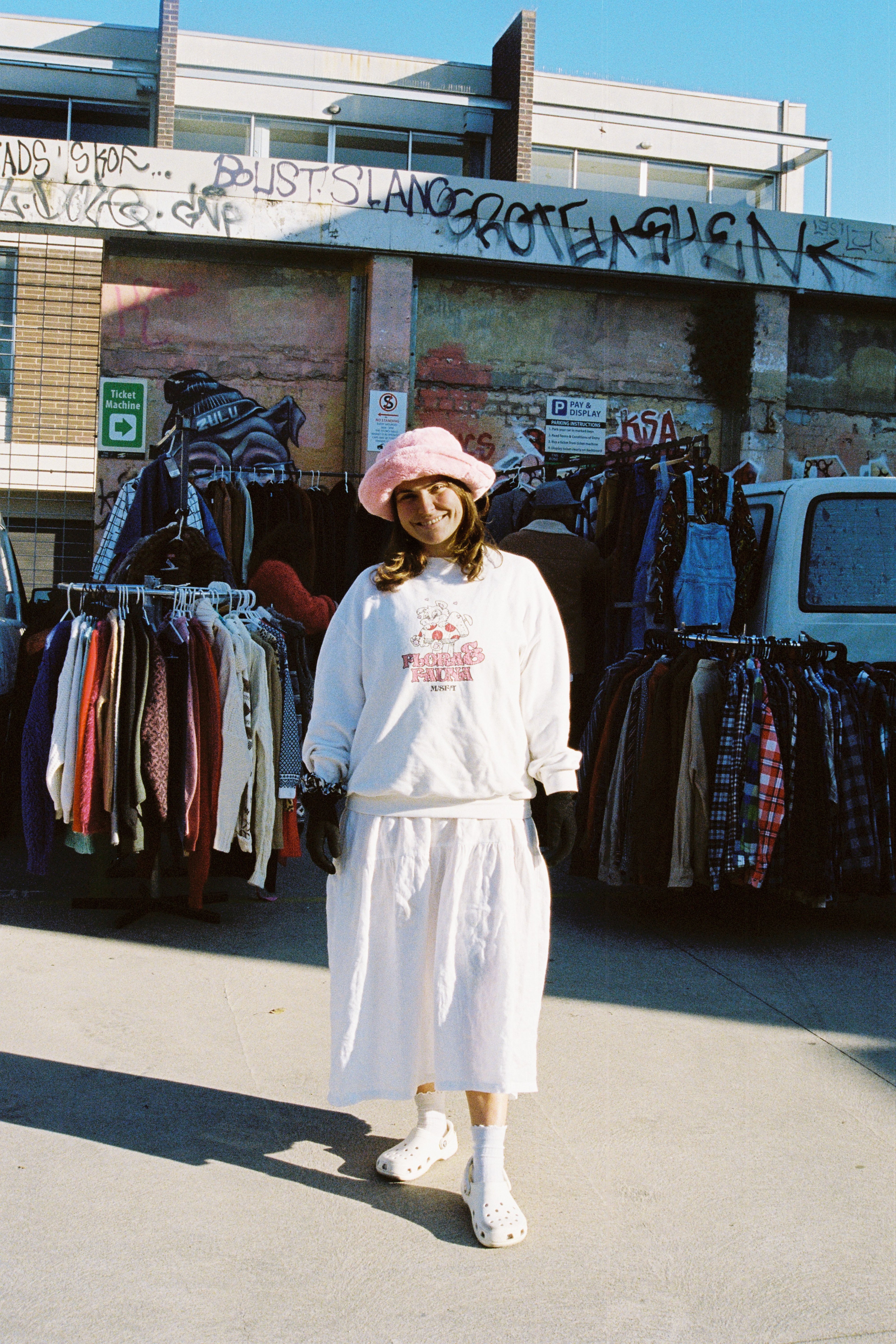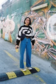 First up, we have Fitzroy, Melbourne. On a brisk Saturday morning, photographer Phoebe Veldhuizen trekked to Fitzroy markets and its surrounding graffiti-clad alleyways. There, she met Siann who piqued her interest with a Maison Margiela coat paired with a Freitag bag, Pooja who looked effortlessly cool in a Paloma Wool sweater that she received as a present, and Grace, who was op-shopping in an outfit that mixed vintage piece and ASOS finds (to call out just a few!).