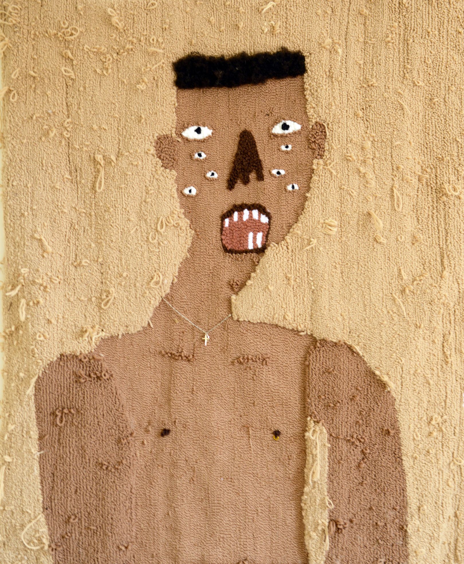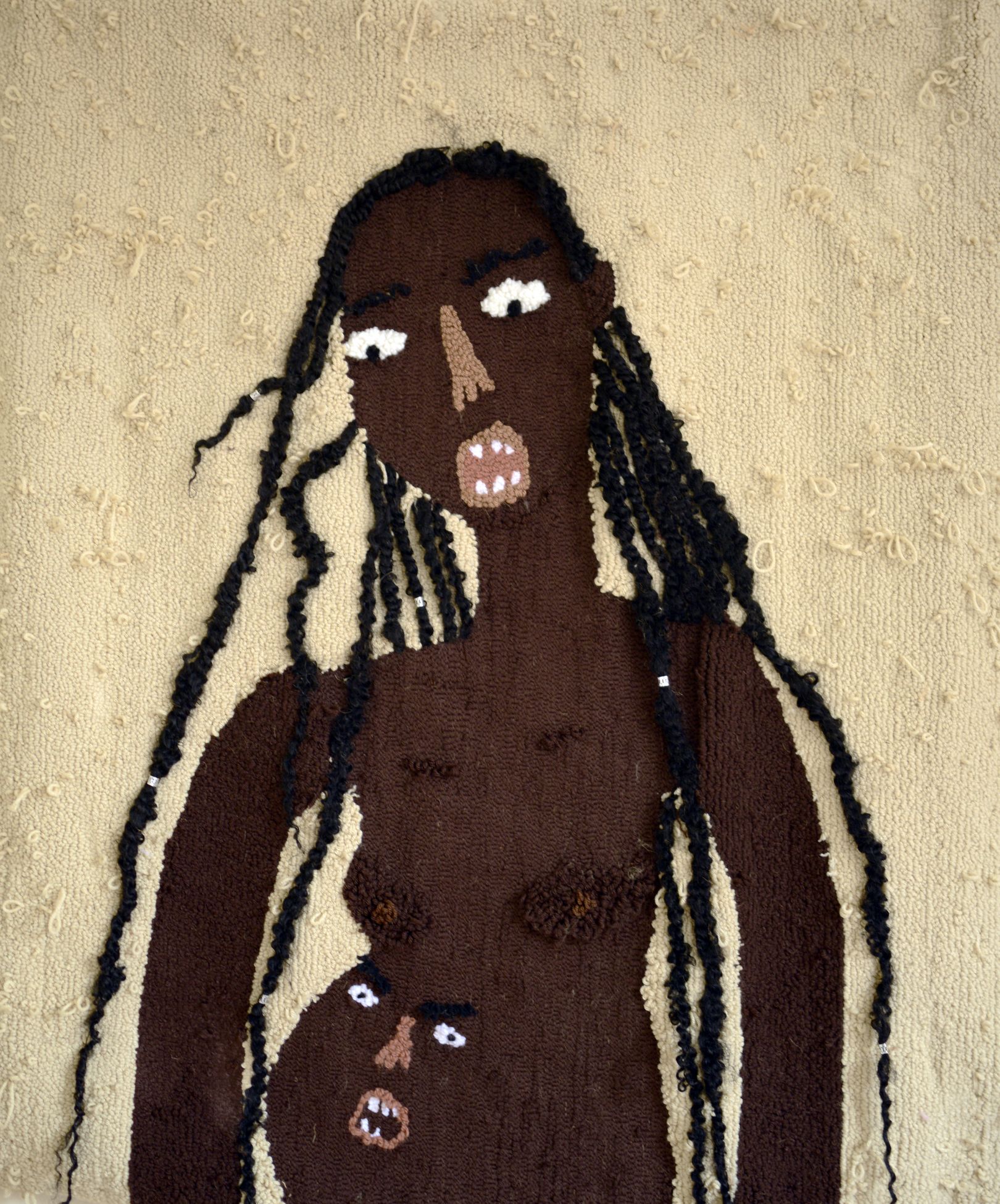When making a piece, Anya uses hair as a vital element throughout the process, often making braids and twists from synthetic hair of reused extensions she's previously worked on. In fact, textiles and afro hairstyling, she says, are both traditionally associated with "femininity, domesticity, decoration and vanity" – "because of this, they have unfortunately been both devalued". As such, Anya strives to bring back value to both practices, utilising the craft of rug hooking and textures, embroidery and needlework to do so, particularly since rug hooking has long been associated with labour "and working-class women's art history and creativity". Afro hairstyling is similar, she adds. "I view it inherently as an art practice requiring immense skill, creativity and intense labour."