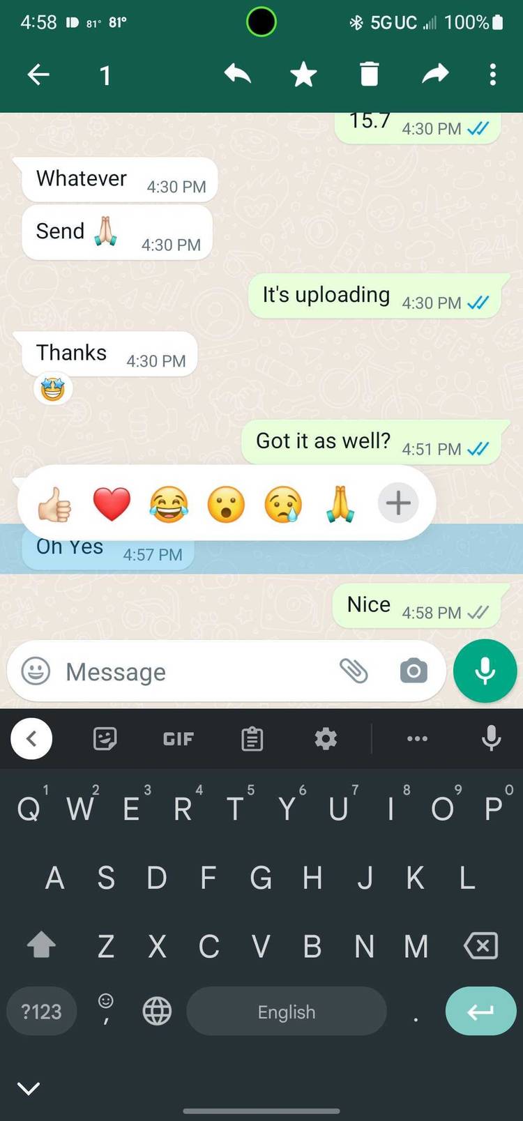 Don't worry if the feature does not show up for you since it is still under development and WhatsApp has not rolled it out to all beta testers. Zuckerberg had teased the addition of new expressions to message reactions when he initially announced the feature, so it's not coming as a surprise, either.