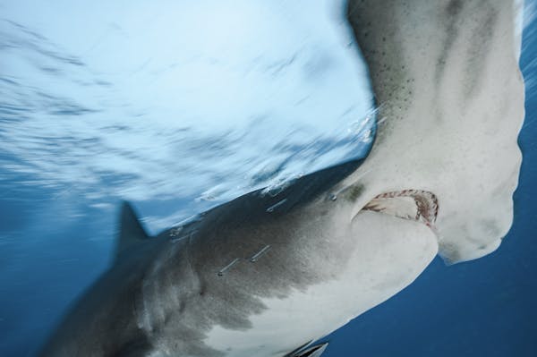 The pores basically act like a metal detector, sensing and locating prey buried under sand on the ocean floor. Regular sharks have these sensory organs too, but hammerheads have more. The farther apart these sensory organs are on a hammerhead’s stretched-out head, the more accurate they are at pinpointing the location of food. Read More...